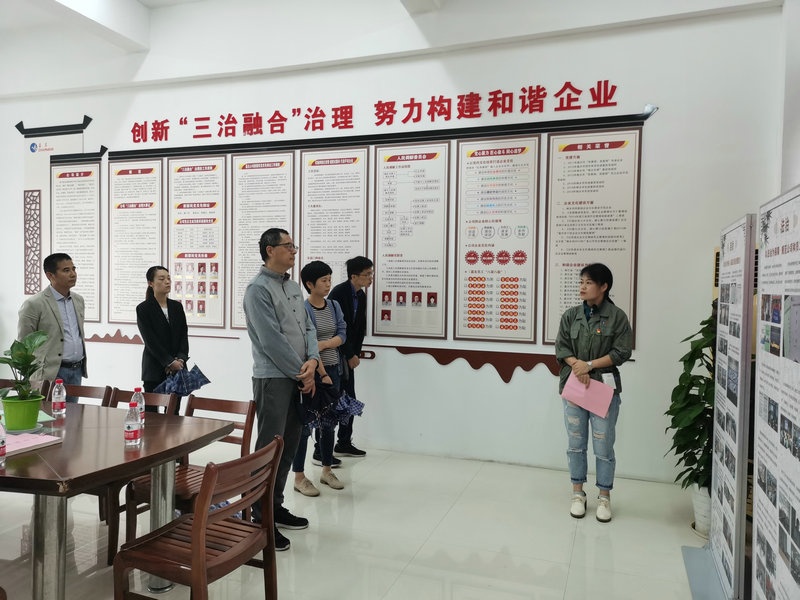 验收组一行实地考察检查了公司“三治融合”展示室和针织、染整员工心灵驿站,听取了公司推进“三治融合”治理事情做法和效果的先容,审查了现场和有关质料,从总体上对利来国际“三治融合”治理事情给予了充分一定和洽评。