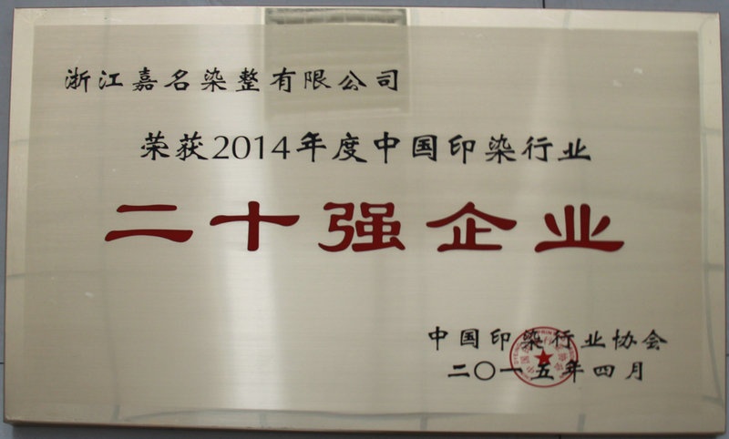 浙江利来国际染整有限公司获“2014年度中国印染行业企业20强”
