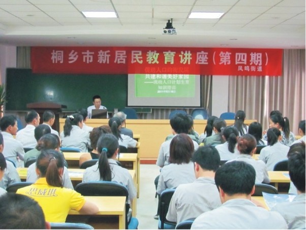 5月16日下昼,凤鸣街道在我公司举行新住民教育讲座。桐乡市新住民事务治理局的有关同志给公司80余名员工就新住民妄想生育政策举行了授课,使新住民员工获得了一次政策服务。